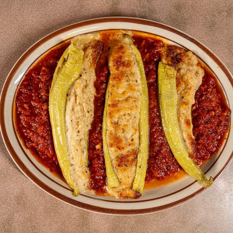 Stuffed with a special blend of cheeses, topped with seasoned red sauce.